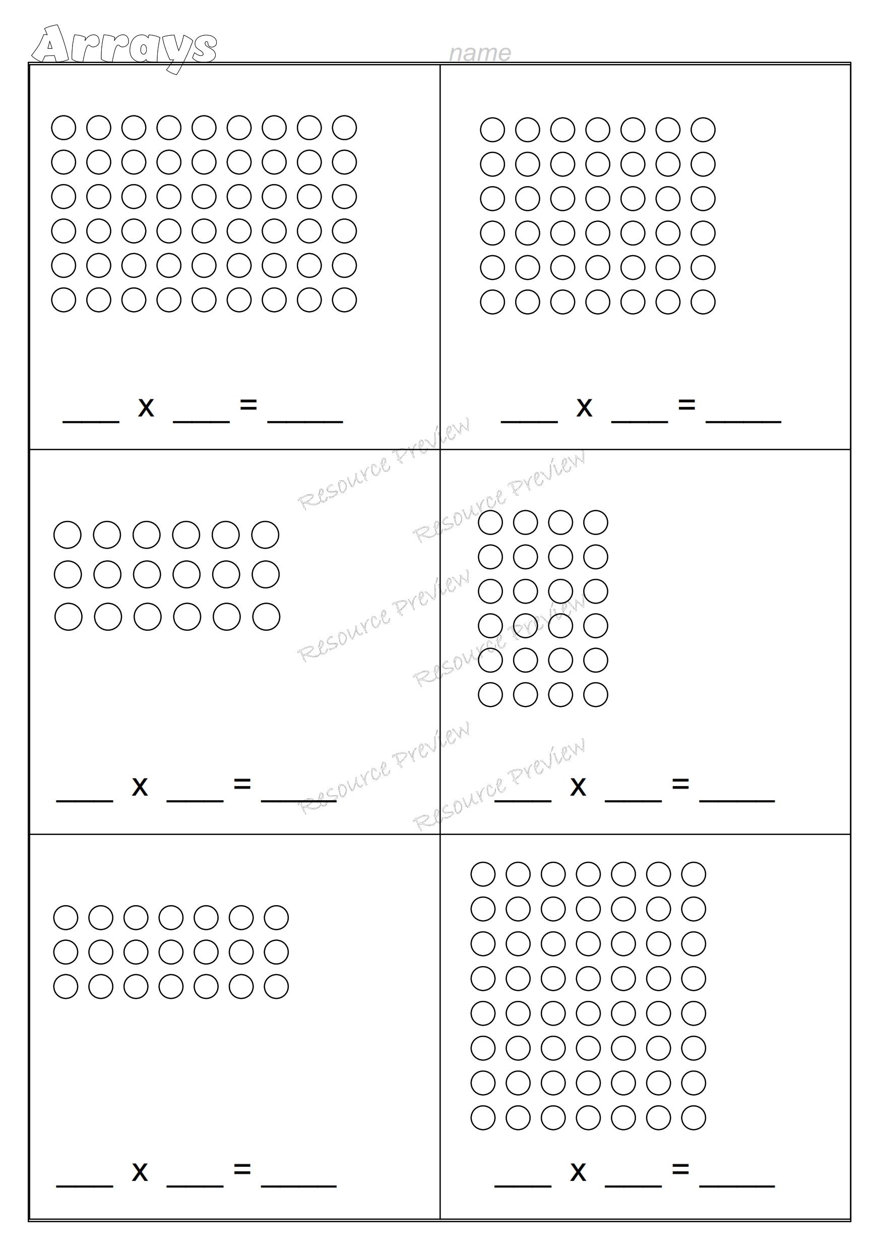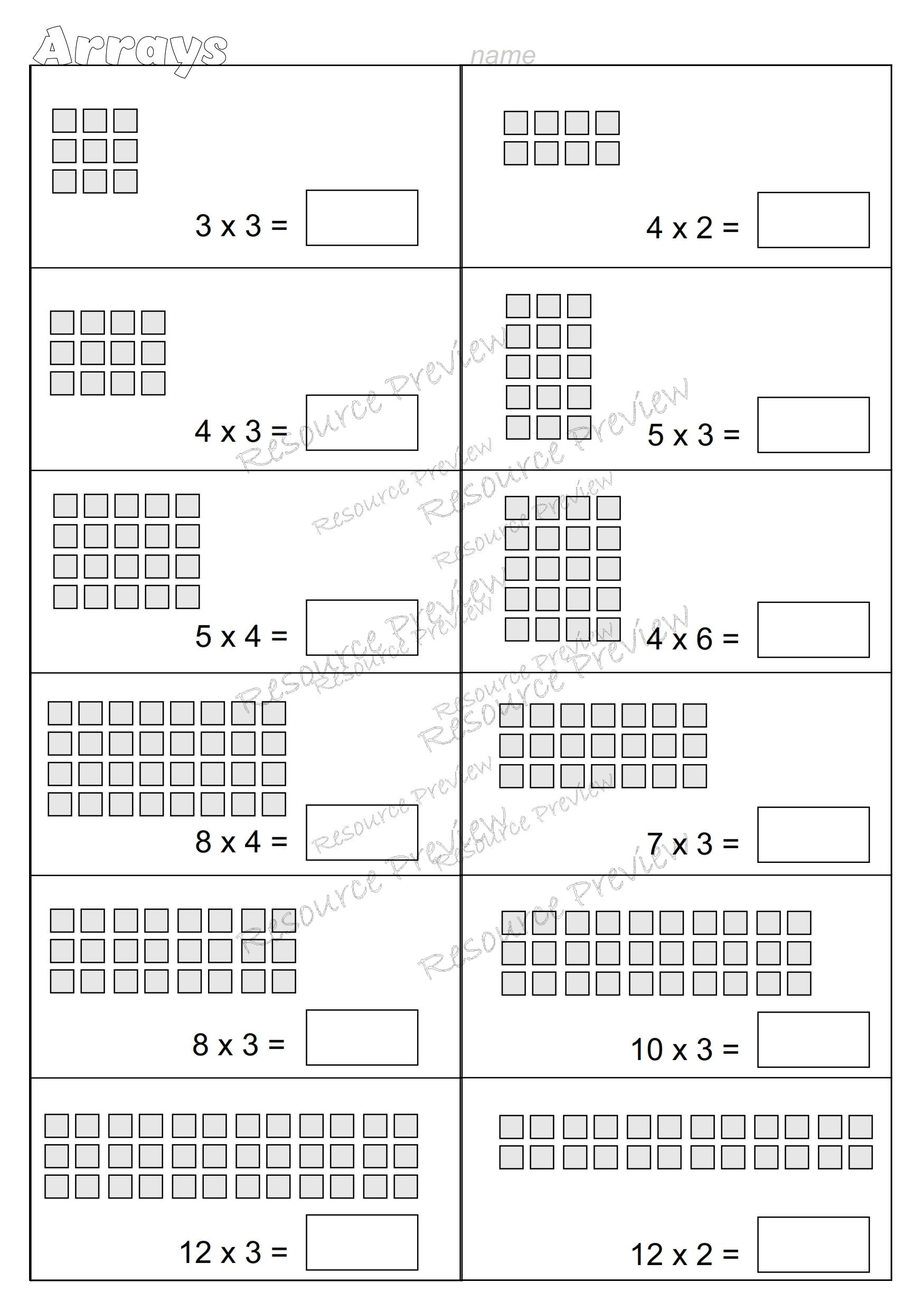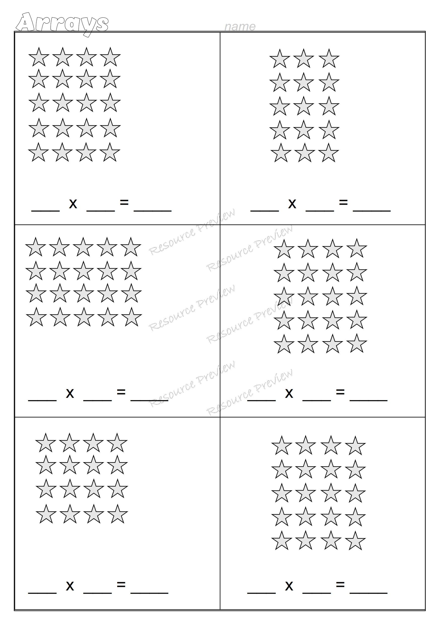 16 pages of mixed sheets included – identify, write number sentences, calculate, make arrays