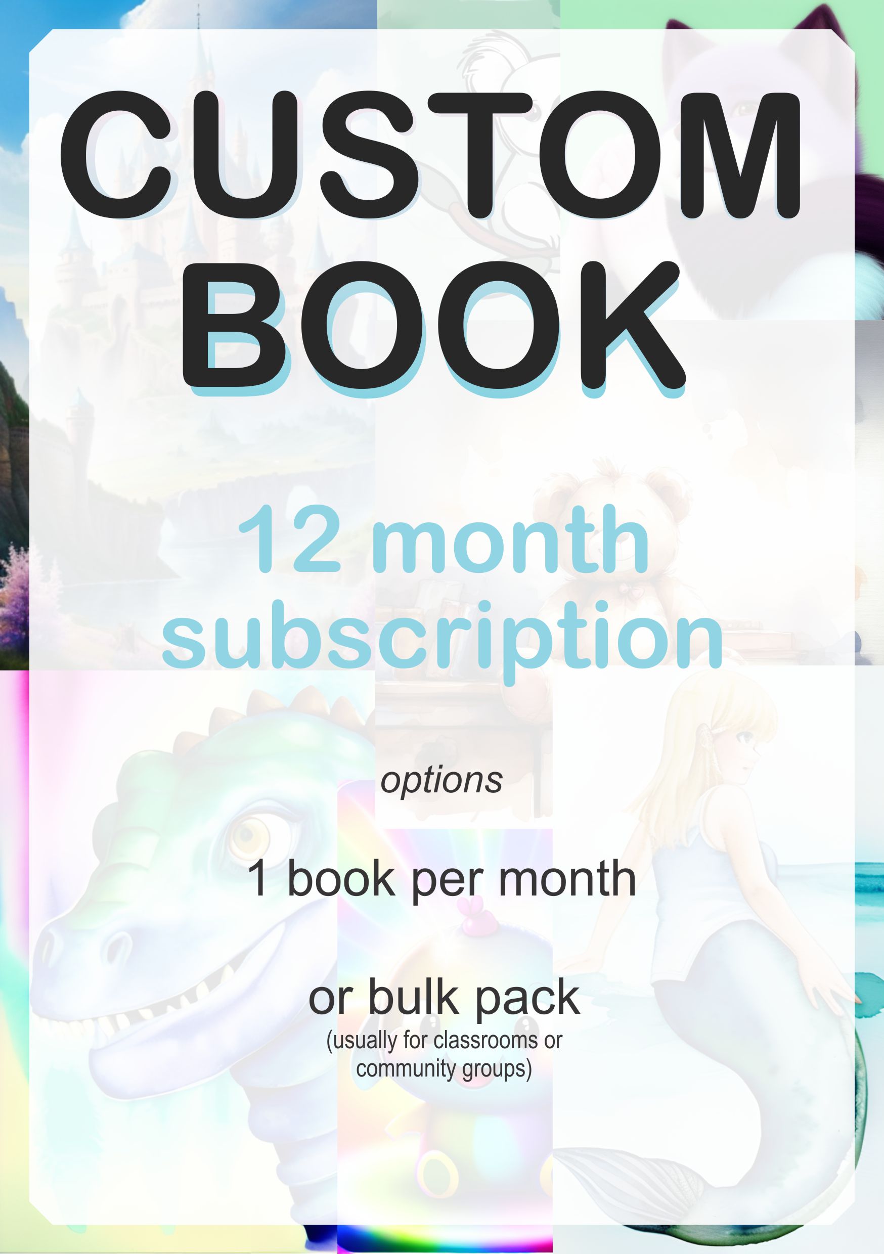 Incorporate a puzzle or drawing feature (age and theme relevant) per book - Subscription fee includes this item for this order of bulk-books at a single book cost.