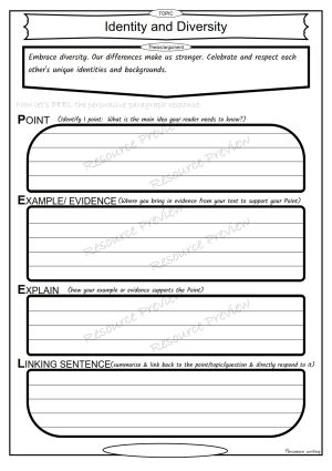 General topic set of 33 PEEL paragraph persuasive text breakdown.