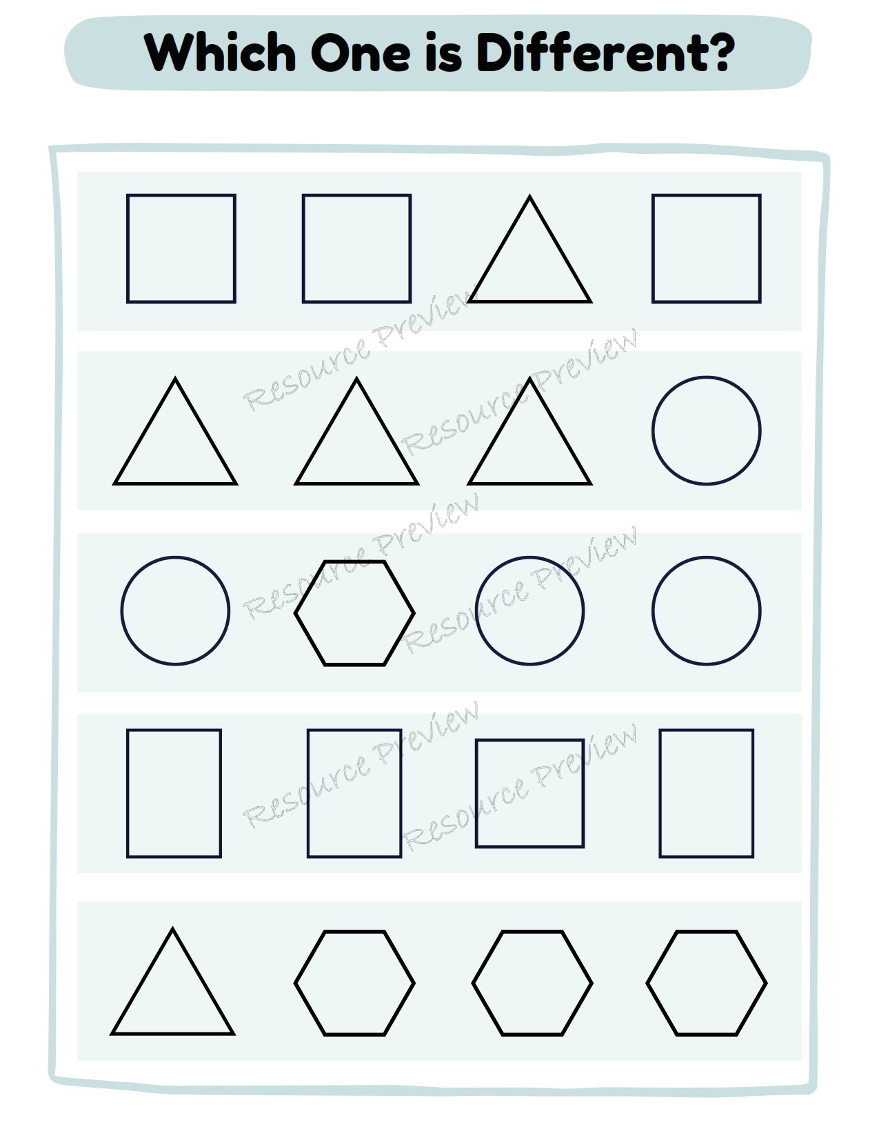 5 x shape identify the one that is different