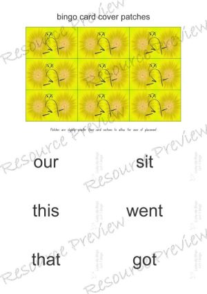 Classroom set of 30 cards, student call card, student word lucky dip call sheet, patch covers.