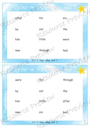 30 cards, student call card, student word lucky dip call sheet, patch covers.