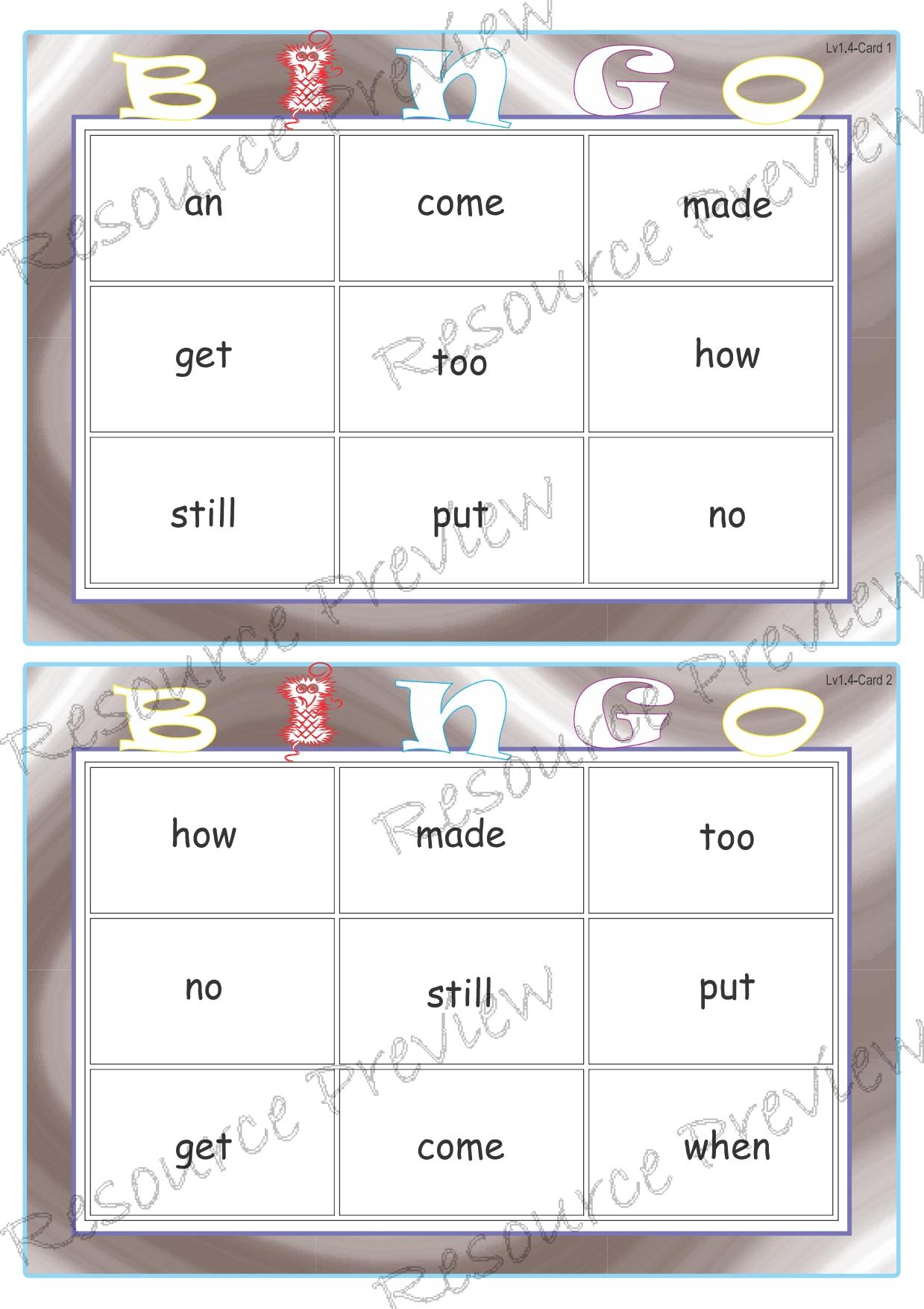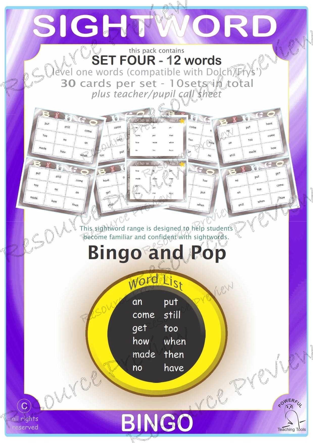 Sight word Bingo Pop Lv1-4