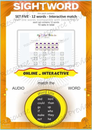 12 sight words per set, each set contains the set of words in a fun interactive activity.