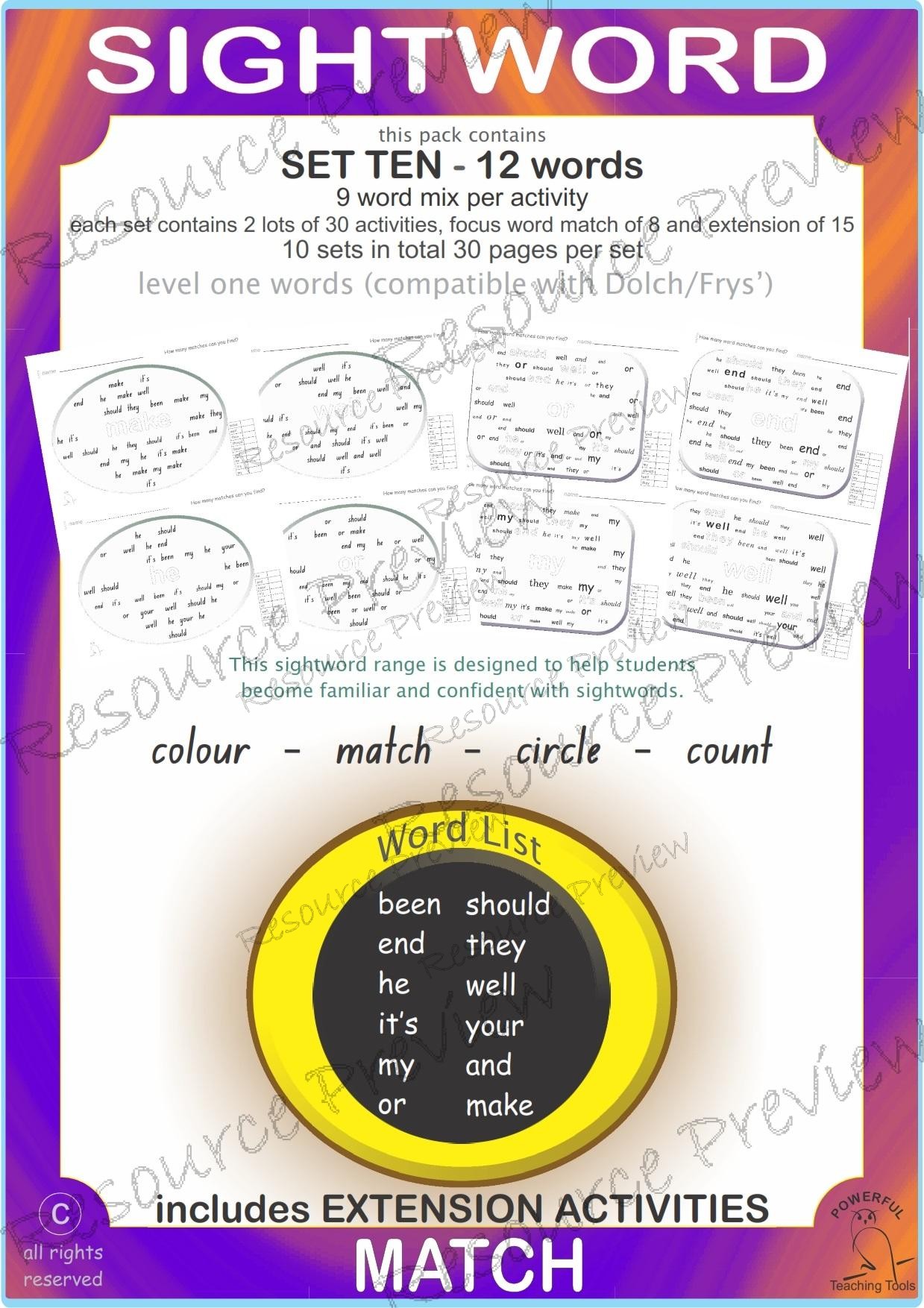 12 sightwords per set. 9 word mix per activity.