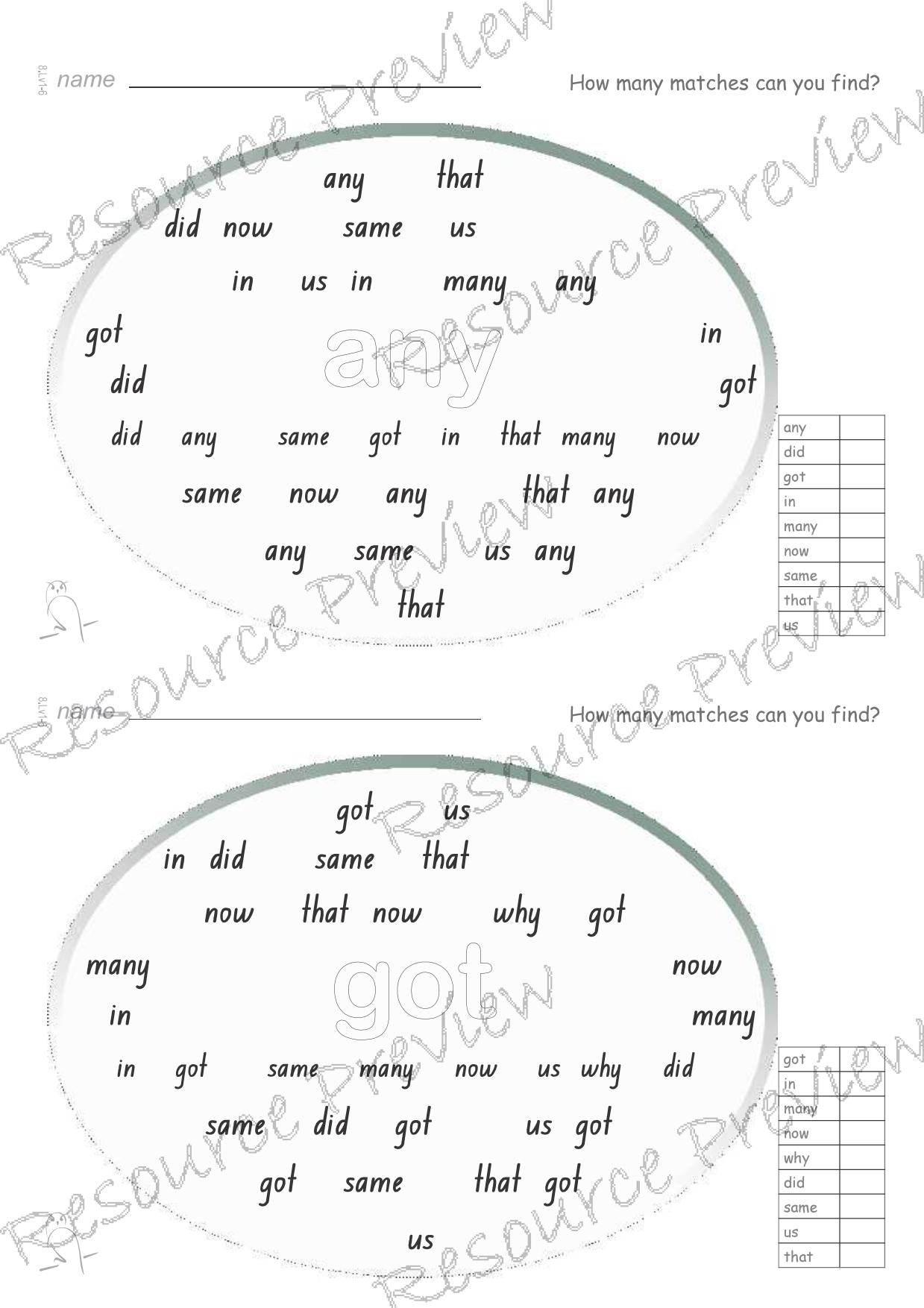 12 sight words per set. 9 word mix per activity.
