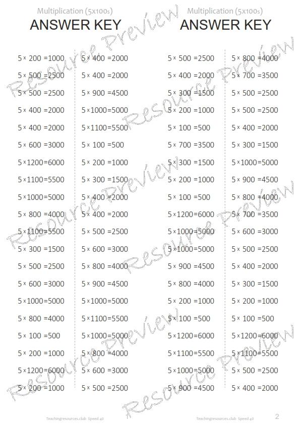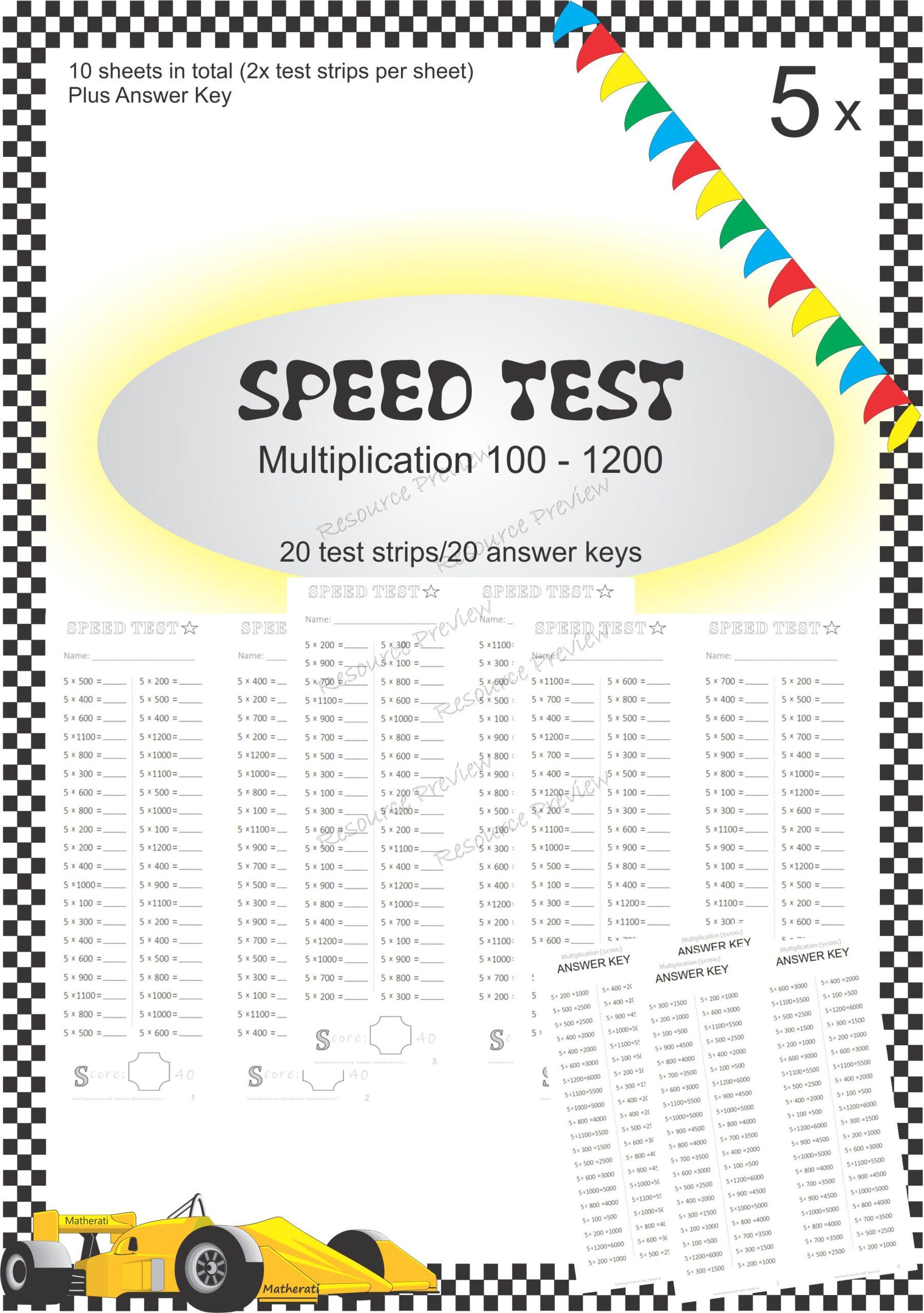 5 x 100s to 1200 Multiplication speed test plus answer key