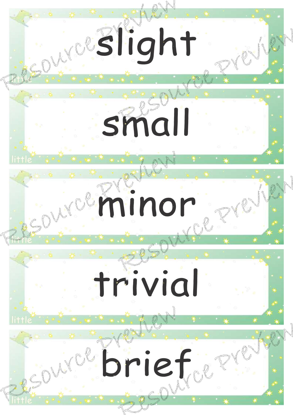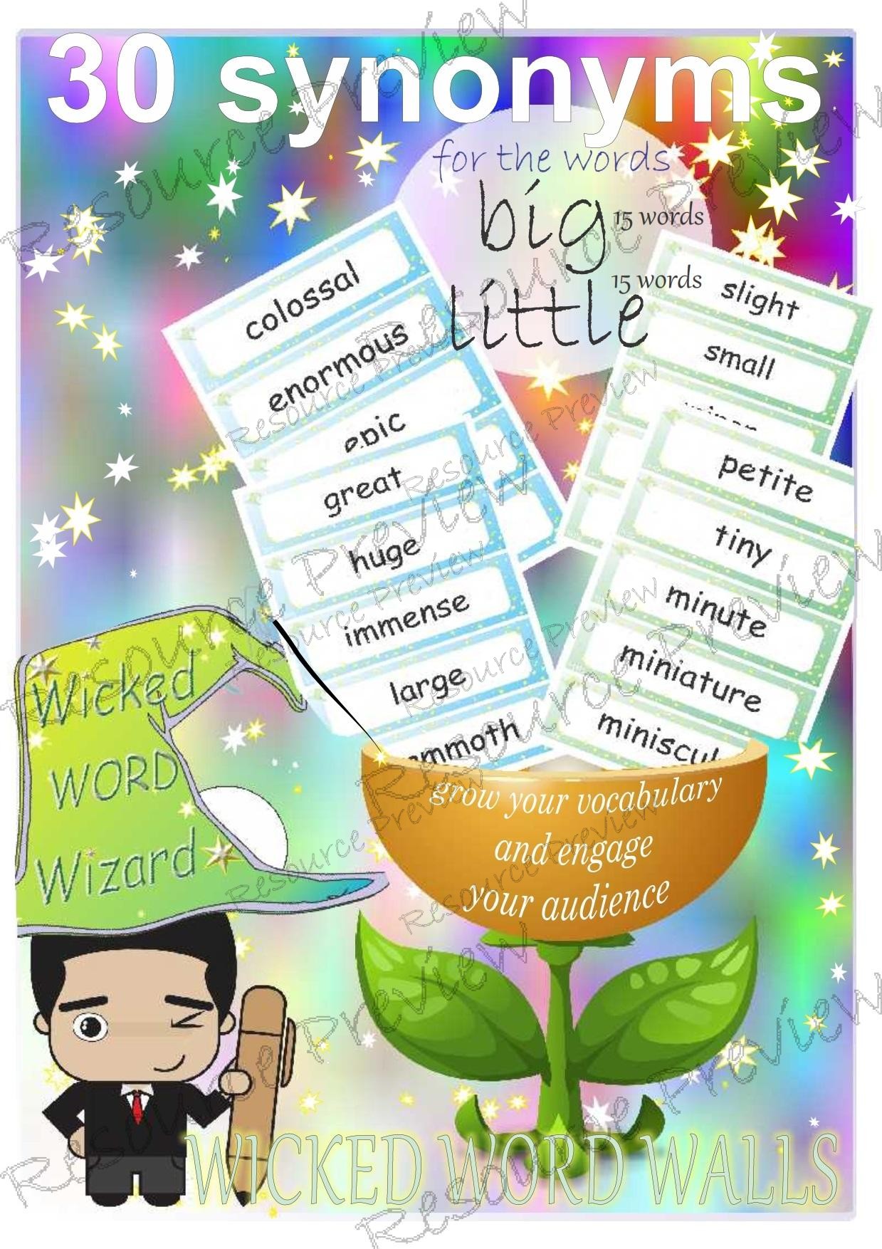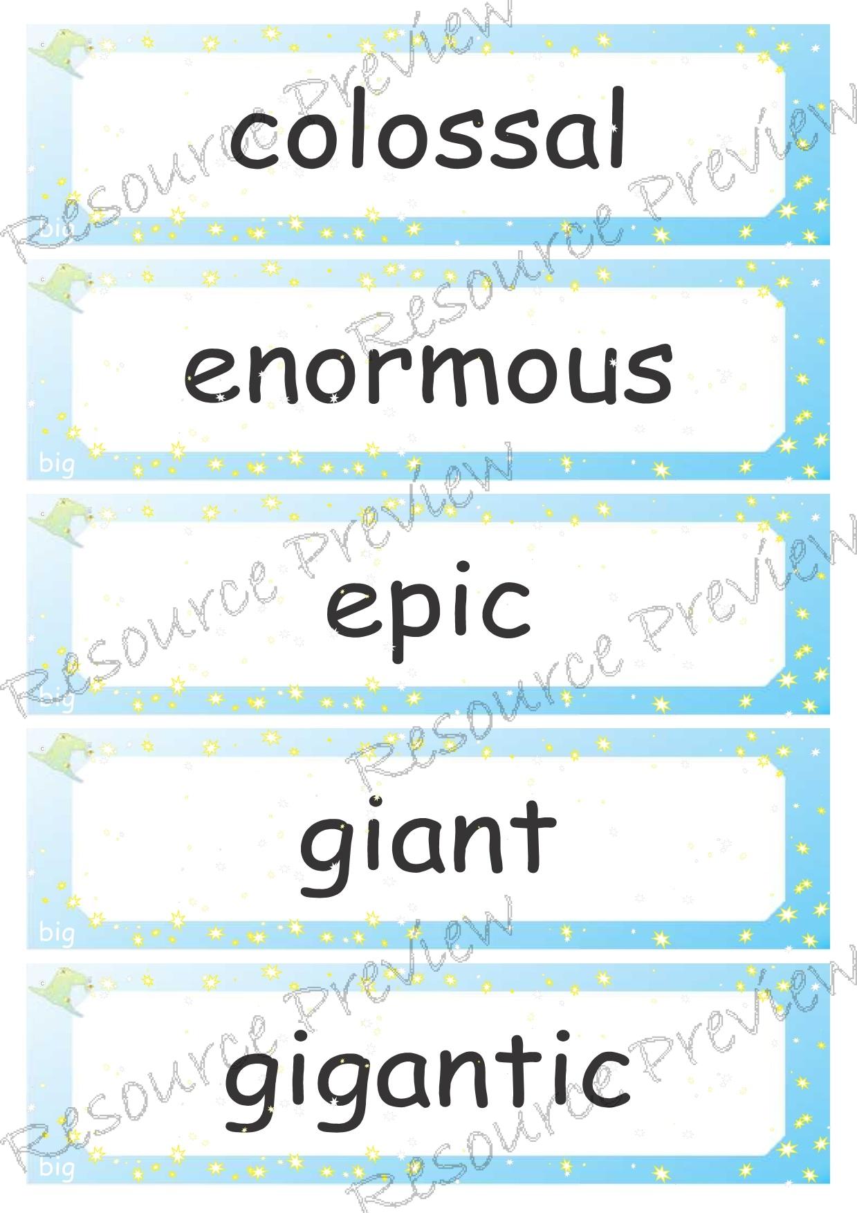 Word wall set of synonyms for the word big (15 words) little (15 words)